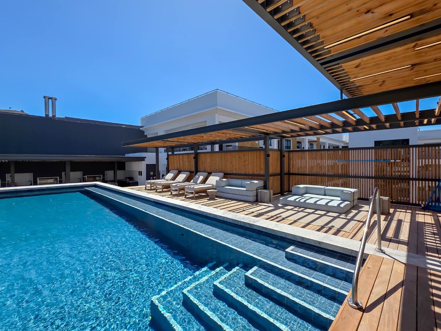 Communal rooftop pool and gym